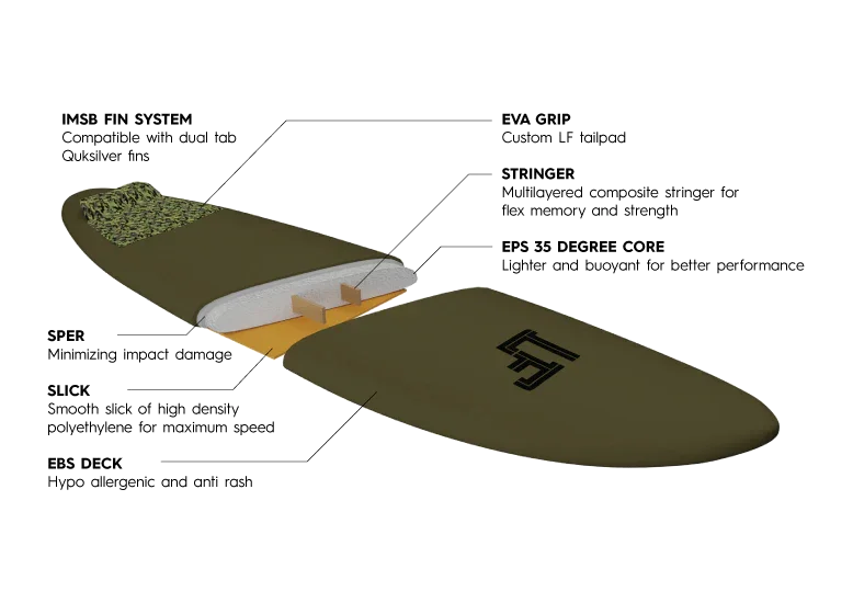 - Hybrid composite core — lightweight, buoyant, and responsive.
