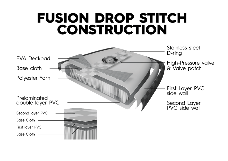 | Construction | Drop-stitch inflatable core, EVA traction deck |